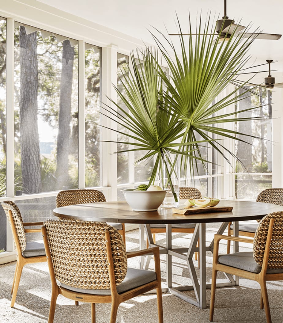 Tropical porch vibes in this Atlanta Home create a subtle, retreat-like environment!