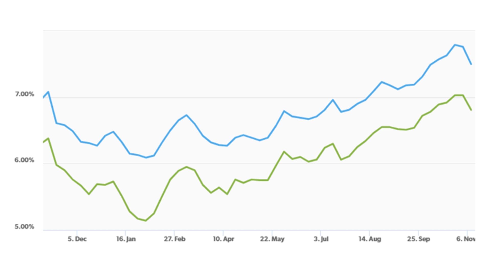 Mortgage rates have been on a perpetual rollercoaster throughout 2023. The year started off surprisingly optimistic with rates in the mid-fives range. However, a spike occurred in the beginning of February, and the rates haven’t cooled since. While there have been a few drops since the steady incline, the majority of buyers in 2023 were faced with a difficult decision—buy now, or wait for the rates to drop. Unfortunately, many of them got left behind.